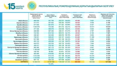 Орталық референдум комиссиясы 15 наурызда өткен жаңа Конституция жобасына қатысты өткен референдумның түпкілікті қортындысын шығарды, деп хабарлайды Minut.kz тілшісі. Комиссия…